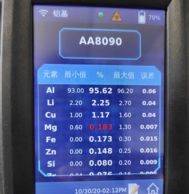 推出的ALi-1型号的手持激光(LIBS)诱导击穿光谱仪,可以对铝合金中的锂(Li)元素进行精准的定量分析。